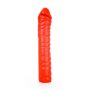De All Black Pierre Dildo is een opvallend en gedurfd product dat perfect is voor degenen die op zoek zijn naar een unieke ervaring. Met een lengte van 38 cm biedt deze dildo een indrukwekkende afmeting die zowel uitdagend als bevredigend is. Gemaakt van hoogwaardig vinyl, voelt het materiaal soepel en comfortabel aan, waardoor het ideaal is voor langdurig gebruik. De levendige rode kleur voegt een speelse en sensuele uitstraling toe, waardoor het een aantrekkelijke aanvulling is op elke verzameling. Dit product is ontworpen met aandacht voor detail en functionaliteit, waardoor het niet alleen een lustobject is, maar ook een stijlvol item dat de slaapkamer kan verfraaien. Of je nu een ervaren gebruiker bent of nieuw bent in de wereld van seksspeeltjes, de All Black Pierre Dildo belooft een onvergetelijke ervaring.