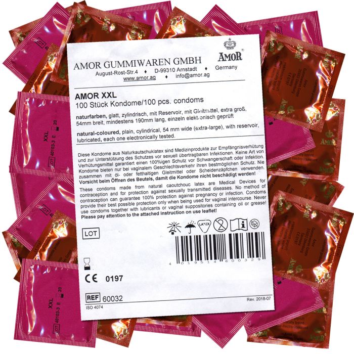 Wähle die richtige Größe, wähle Komfort und wähle Sicherheit. Mit Amor XXL Kondomen bist du immer gut vorbereitet.
