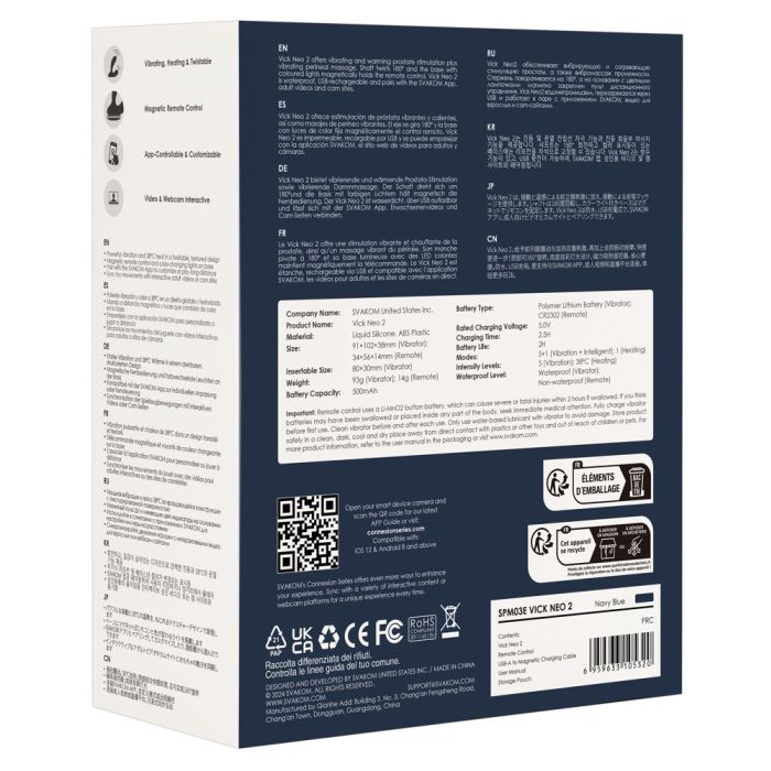 Der Vick Neo 2 bietet eine Heizfunktion, die das Spielzeug schnell auf eine angenehme Körpertemperatur erwärmt, sodass Sie sofort ein komfortables Erlebnis genießen können. Mit fünf sanften Vibrationsmodi, jeder mit fünf Intensitätsstufen, finden Sie immer die perfekte Einstellung für Ihre Bedürfnisse. Der SVAKOM Intelligent-Modus imitiert einen echten Sexrhythmus und verleiht Ihrem Spiel eine zusätzliche Dimension. Dank der Speicherfunktion merkt sich das Spielzeug den zuletzt verwendeten Vibrationsmodus, damit Sie immer schnell wieder genießen können. Mit der SVAKOM-App können Sie die Vibrationen anpassen, aus der Ferne spielen und sogar mit Ihrem Partner kommunizieren. Darüber hinaus ermöglicht die FeelConnect 3-App das Synchronisieren von interaktiven Videos und das Übertragen von Live-Webcamshows. Das beleuchtete LED-Display an der Basis des Spielzeugs fügt Ihrer Erfahrung ein visuelles Element hinzu, während die praktische Tastenverriegelung für diskreten Transport und Aufbewahrung sorgt.