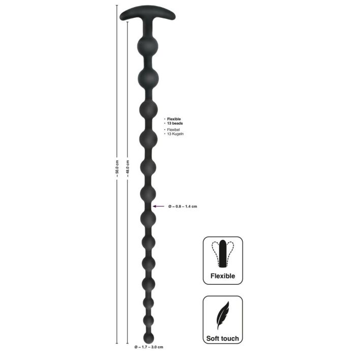 Entdecken Sie das ultimative Gefühl mit den flexiblen Analperlen von Black Velvets, ein Produkt, das Sie nicht verpassen wollen! Mit einer beeindruckenden Länge von mehr als einem halben Meter sind diese Perlen perfekt für sowohl Solo- als auch Duo-Vergnügen. Die 13 sorgfältig gefertigten Kugeln bieten ein einzigartiges Erlebnis, wobei jede Kugel eine andere Stimulation bietet. Die aufregende Kugel mit 3 cm Durchmesser fügt eine zusätzliche Dimension des Vergnügens hinzu, während die variierenden Breiten und Schlaufen im Durchmesser für eine verspielte und herausfordernde Stimulation sorgen, die Ihre Sinne anregt.