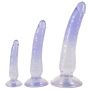 Entdecken Sie das Dildo-Trio von Crystal Clear, ein 3-teiliges Anal Training Set, das speziell für anale Vergnügen und Dehntraining entwickelt wurde. Dieses Set umfasst drei Dildos in unterschiedlichen Größen und Gewichten, die Ihnen helfen, Ihre Grenzen sicher und angenehm zu erweitern. Der kleine Dildo hat eine Gesamtlänge von 11,9 cm und eine Einführlänge von 10,5 cm, mit einem maximalen Durchmesser von 2,3 cm und einem Gewicht von 45 g. Der mittlere Dildo misst 16,7 cm in der Gesamtlänge, 15,2 cm in der Einführlänge und hat einen Durchmesser von 3,4 cm bei einem Gewicht von 129 g. Der große Dildo bietet mit einer Gesamtlänge von 21,5 cm, einer Einführlänge von 19,4 cm und einem maximalen Durchmesser von 4,4 cm sowie einem Gewicht von 276 g ein intensives Erlebnis.