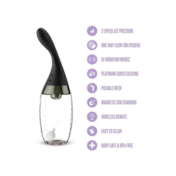 Dieses Gerät ist mit einem anpassbaren 3-Geschwindigkeiten-Düsen-System und 5 Präzisionsdüsen ausgestattet, sodass Sie die Spülung vollständig an Ihre persönlichen Vorlieben anpassen können. Das intelligente Design mit Einwegfluss verhindert Rückfluss, was bedeutet, dass Sie sich immer auf ein sauberes und frisches Erlebnis verlassen können. Mit nicht weniger als 10 leistungsstarken Vibrationsmodi hilft Ihnen der Aqua Jet nicht nur, sich zu entspannen, sondern sorgt auch für eine gründlichere Reinigung. Der ergonomische Hals ist biegsam und passt sich mühelos Ihren Bewegungen an, sodass Sie immer die perfekte Position für ultimativen Komfort finden.