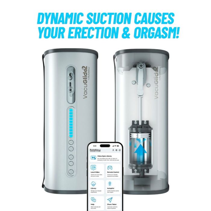 De VacuGlide 2 is de revolutionaire automatische masturbator van Autoblow. Deze fluisterstille masturbator combineert geavanceerde vacuümgestuurde grijp- en glijbewegingen met een krachtige zuigkracht, waardoor je kunt genieten van een realistische blowjob-sensatie. Met een indrukwekkend bereik van 25 tot 200 zuigimpulsen per minuut en de mogelijkheid om de strokerfunctie aan te passen, biedt de VacuGlide 2 de perfecte penismassage die volledig is afgestemd op jouw wensen. Leun achterover en laat je meevoeren in een wereld van genot met slechts een druk op de knop.