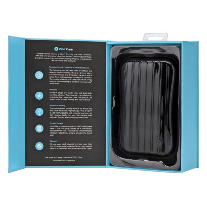 Die Reinigung des b-Vibe Trio Buttplugs ist einfach: Sprühen Sie den Plug mit Toycleaner ein, lassen Sie ihn kurz einwirken und wischen Sie ihn mit einem Tuch sauber. Der Plug wird in einer diskreten Verpackung mit praktischem Aufbewahrungsetui für Plug, Fernbedienung und USB-Kabel geliefert. Das stromlinienförmige Design, das weiche Silikon und das leise Vibrieren machen diesen Buttplug ideal für sowohl solo- als auch Partnervergnügen.