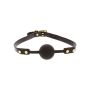 Entdecken Sie die aufregende Welt der Bondage mit dem Ball Gag Taboom. Dieser Mundknebel hat ein sexy schwarzes Design mit goldenen Details, wodurch er stilvoll und attraktiv aussieht. Hergestellt aus superweichem veganem PU-Leder, bietet das verstellbare Band eine komfortable und persönliche Passform.