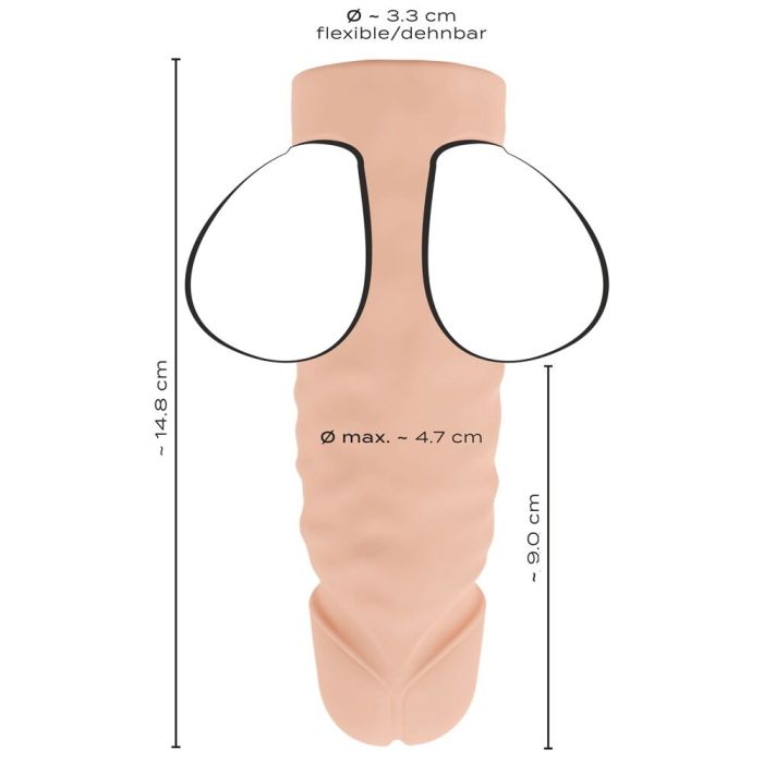 Der Ball Stretcher von Realistixxx mit Dildo für doppelte Penetration bietet ein einzigartiges Erlebnis für Liebhaber intensiver Empfindungen. Mit dem breiten Ring, der über die Hoden gelegt wird, und dem flexiblen Dildo, der für tiefe Penetration sorgt, ist dieses Produkt perfekt, um neue Formen des Genusses zu erkunden.