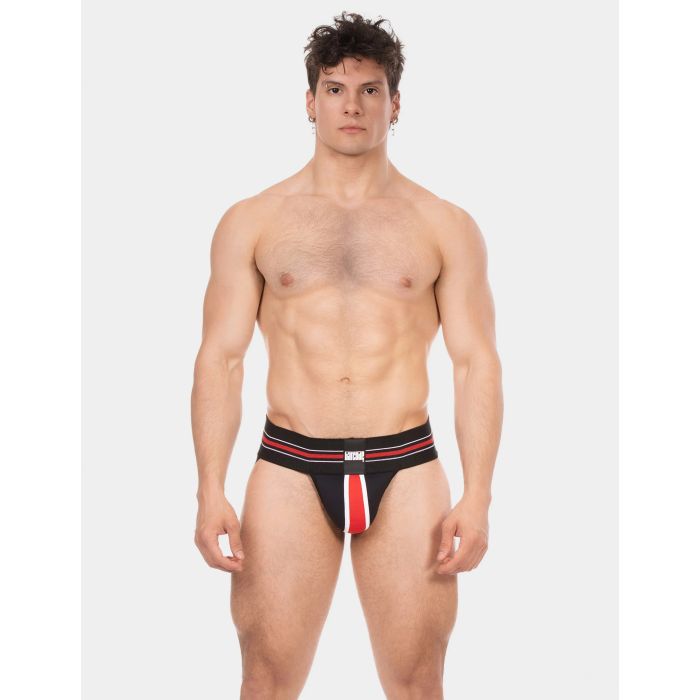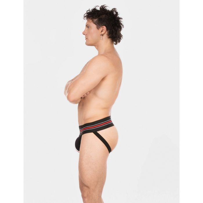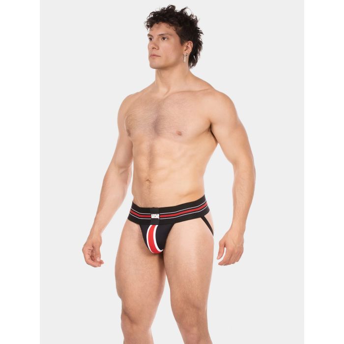 Der Barcode Jock Denis in Schwarz, Rot und Weiß ist die perfekte Mischung aus Stil und Funktionalität! Dieser sportliche Jockstrap hat einen breiten elastischen Bund mit trendigen Streifen und einem auffälligen Logo-Patch. Die konturierte Vorderseite bietet Halt und Unterstützung, während die verstärkten Nähte für zusätzliche Haltbarkeit sorgen. Mit einem offenen Rücken und bequemen Beingurten ist dieser Jockstrap ideal für jeden sportlichen Anlass. Verbessern Sie Ihr Sportoutfit und erleben Sie den Komfort und Stil, den Sie verdienen!