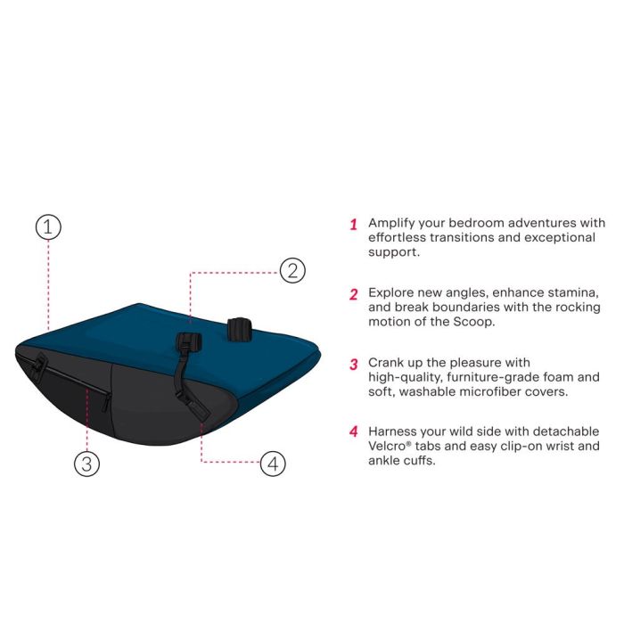 Das Kissen ist nicht nur vielseitig, sondern auch praktisch in der Anwendung. Die Mikrofaserhülle fühlt sich weich an, ist feuchtigkeitsresistent und einfach in der Waschmaschine zu reinigen. Zusammen mit dem mitgelieferten Bondage-Set, der Augenmaske und den verstellbaren Fesseln kannst du sicher und komfortabel deine Fantasien erkunden. Der robuste Schaumstoff behält seine Form, sodass der Schaukeleffekt in jedem Moment erhalten bleibt. Mit dem Scoop Rocker entdeckst du eine neue Dimension des sexuellen Vergnügens, mit Komfort und Vielseitigkeit, die du immer wieder erleben möchtest.