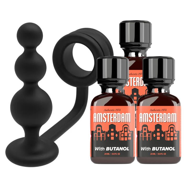Entdecken Sie die perfekte Kombination aus physischer Stimulation und euphorischen Empfindungen mit dem Beaded Butanol Poppers Pack! Dieses exklusive Kombisett enthält drei Fläschchen kraftvoller Amsterdam Butanol Poppers von 24 ml, zusammen mit einem vielseitigen 2-in-1 Spielzeug von Ramrod: einem robusten Penisring mit integriertem Analplug. Dieses Duo ist für den abenteuerlustigen Benutzer konzipiert, der intensive Lust und langanhaltendes Vergnügen sucht.