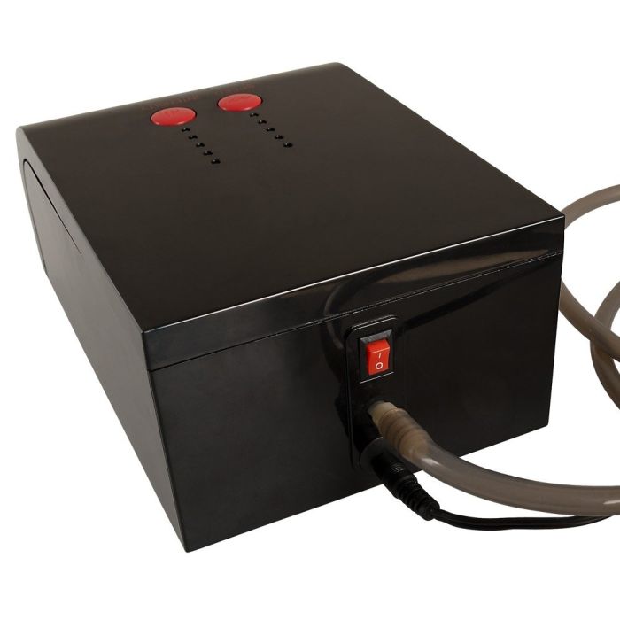 Der leistungsstarke Elektromotor ist ordentlich in einem eleganten schwarzen Gehäuse mit kompakten Maßen von 20 cm Länge, 13 cm Breite und 8 cm Höhe verstaut. Mit einem 2 Meter langen Netzkabel und einer Schlauchlänge von 1,5 Metern hast du mehr als genug Bewegungsfreiheit während des Gebrauchs, ideal für entspanntes und komfortables Genießen.