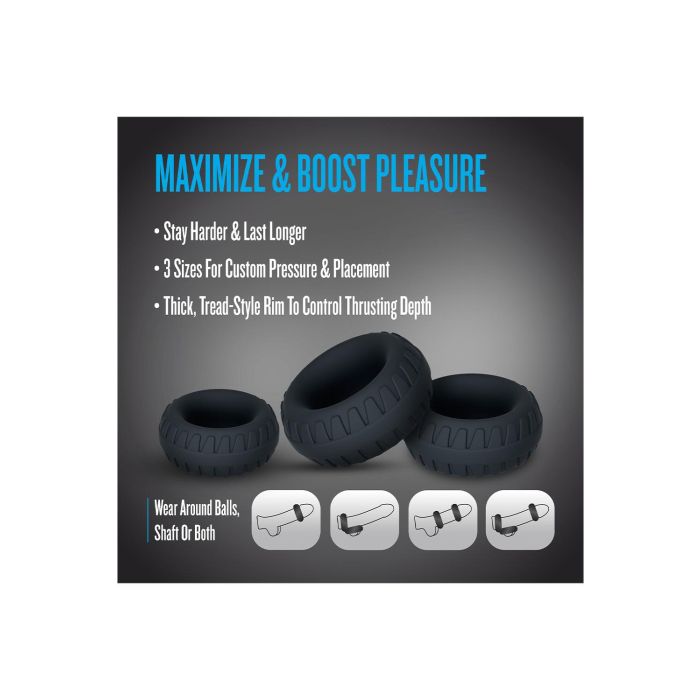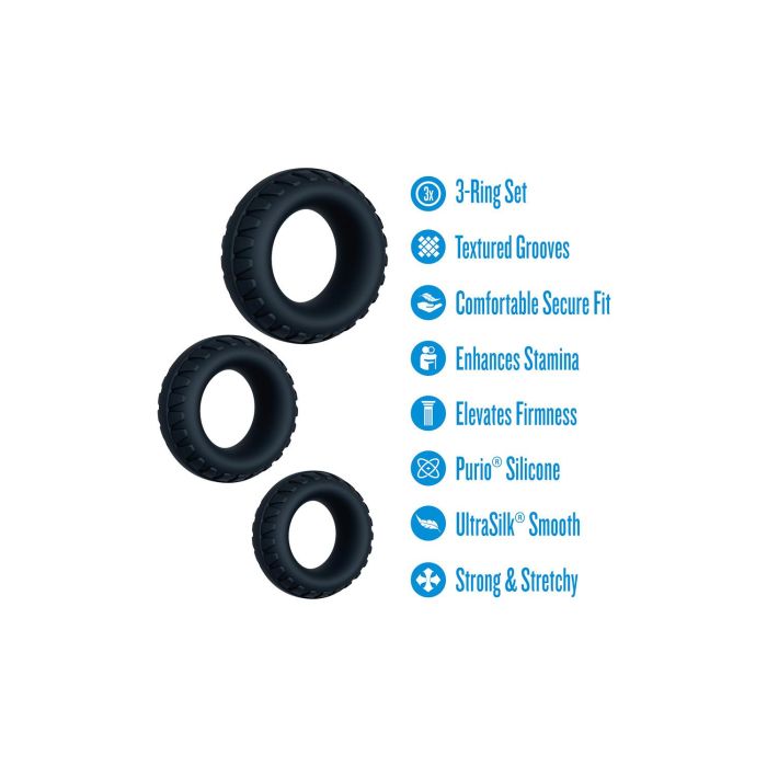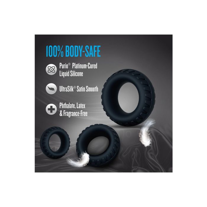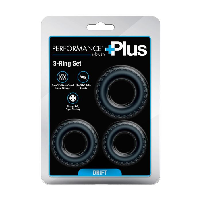 Das Blush Drift Cockring-Set ist ein Premium-Set aus drei Ringen, die speziell entwickelt wurden, um Ihr Vergnügen auf ungeahnte Höhen zu bringen! Mit der innovativen Performance® Plus Drift Technologie maximieren Sie nicht nur Ihre Ausdauer, sondern behalten auch härtere Erektionen bei und verlängern die Spielzeit für ein unvergessliches Erlebnis. Das robuste und strukturierte Design, zusammen mit den drei verschiedenen Größen, sorgt für einen markanten Look und eine perfekte Passform, egal ob Sie sie einzeln tragen oder in einer aufregenden Kombination stapeln. Hergestellt aus Purio® platina-gehärtetem Flüssigsilikon, bieten diese Ringe eine UltraSilk® satinierte Oberfläche, die sich herrlich weich auf der Haut anfühlt. Sie sind stark, ultra-dehnbar und passen sich mühelos Ihrem Körper und Rhythmus an, sodass Sie jeden Moment mit Vertrauen genießen können. Die strukturierte Oberfläche fügt bei jeder Bewegung zusätzliche Stimulation hinzu, während die abgestuften Größen Ihnen die Freiheit geben, zu entdecken, was sich für Sie am besten anfühlt. Erhöhen Sie die Intensität und Unterstützung Ihrer intimen Momente mit dem Drift Cockring-Set und erleben Sie eine neue Dimension des Vergnügens, die Sie nicht verpassen möchten!