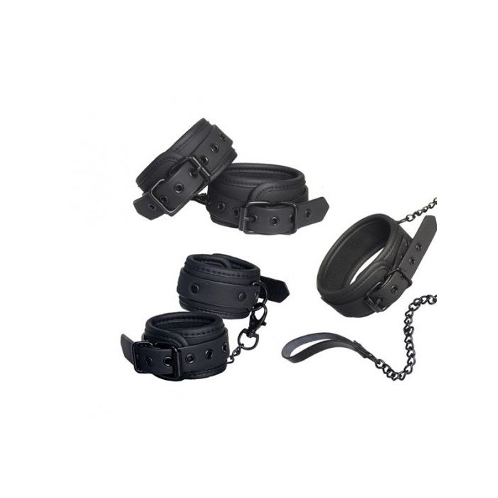 Mit diesem kompletten Bondage-Set hast du alles, was du brauchst, um sofort anzufangen, deine kinky Seite zu erkunden. Das Set enthält Handschellen, Knöchelfesseln und ein Halsband, alle aus hochwertigem Neoprenmaterial gefertigt. Die verstellbaren Schnallenverschlüsse sorgen dafür, dass du die Accessoires perfekt an deinen Körper anpassen kannst, für eine komfortable und sichere Erfahrung.