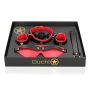 Entdecken Sie die spannende Welt der Bondage mit dem Bondage Set Milan, einer verführerischen Kombination aus Rot und Schwarz, die Ihre Sinne anregen wird. Dieses Set ist perfekt für sowohl Anfänger als auch erfahrene Abenteurer und bietet alles, was Sie für ein aufregendes Erlebnis benötigen. Die komfortable Augenbinde sorgt dafür, dass Sie sich vollständig den Empfindungen hingeben können, während die robusten Handschellen Sie sicher und angenehm fesseln. Für einen extra spielerischen Touch ist ein Ballknebel enthalten, und das Halsband mit Kette gibt Ihrem Partner ein Gefühl der Hingabe, das die Spannung auf ein höheres Niveau hebt.
