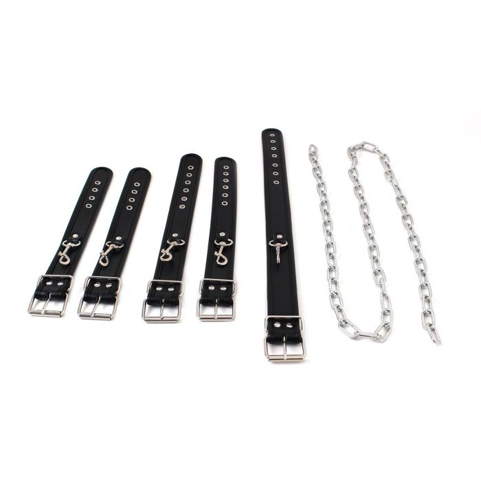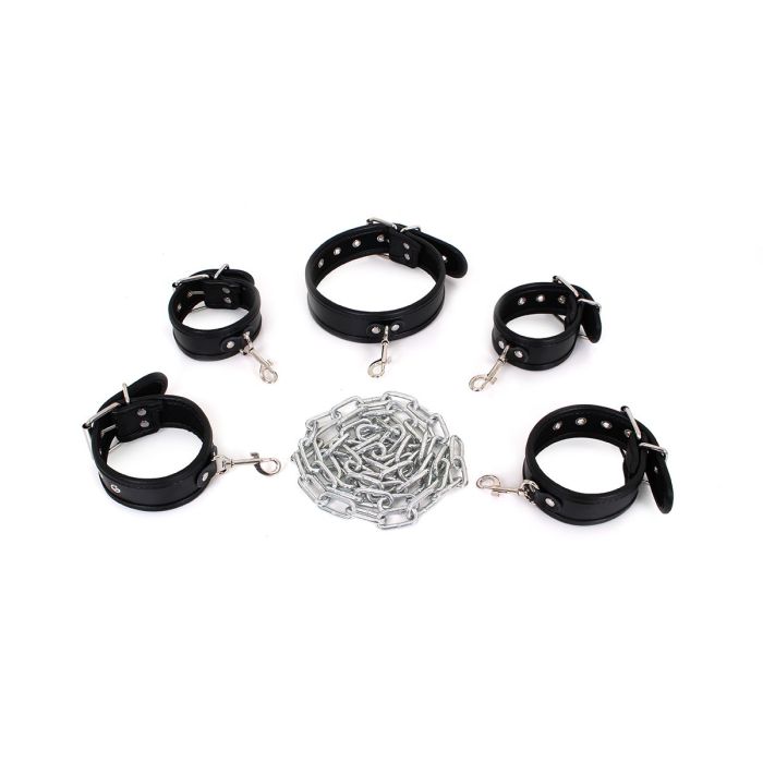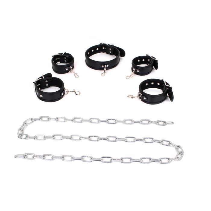 De hand- en enkelboeien, samen met de bijpassende collar, zorgen voor een complete ervaring die je samen met je partner kunt verkennen. Of je nu een beginner bent of al ervaring hebt, deze ketting biedt de perfecte gelegenheid om je grenzen te verleggen en nieuwe hoogtes van genot te ontdekken.