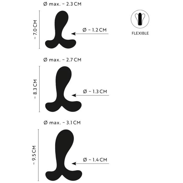 Jeder dieser Plugs hat ein leicht gebogenes Ende, das perfekt zum Erreichen der Prostata, auch als P-Punkt bekannt, ist. Die glatte Oberfläche sorgt für ein müheloses Einführen, sodass du dich vollständig dem Vergnügen hingeben kannst. Ob Anfänger oder erfahrener Benutzer, die flexible, zulaufende Form der Plugs passt sich mühelos deinem Körper an.