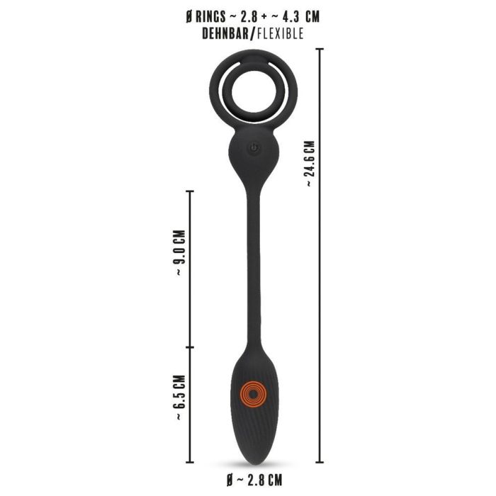 Der Cock- und Ballring mit RC Buttplug von Rebel ist ein innovatives Produkt, das sowohl die Vorder- als auch die Rückseite des männlichen Körpers stimuliert. Mit dem Penis- und Hodenring vorne und dem vibrierenden Buttplug hinten bietet dieses Toy ein einzigartiges Erlebnis sowohl für Solo- als auch für Partnergebrauch. Die Ringe bestehen aus dehnbaren Materialien, die bequem um Penis und Hoden passen, während der vibrierende Buttplug mit seiner Spiralstruktur und verschiedenen Vibrationsmodi für intensive Stimulation sorgt. Der flexible Verbindungsstab sorgt für zusätzliche Stimulation des Perineums, wodurch die Empfindungen noch intensiver werden.