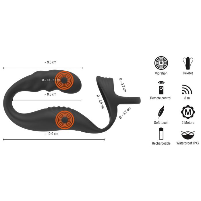 Dit speeltje is ontworpen voor de ultieme verwennerij van je penis, perineum en prostaat. Het unieke harnas met twee rekbare ringen zorgt ervoor dat alles perfect op zijn plaats blijft, terwijl de krachtige vibrators je opwindende sensaties bieden. Met maar liefst 10 vibratiestanden per motor, die je afzonderlijk kunt bedienen, kun je de intensiteit helemaal afstemmen op jouw wensen. Of je nu alleen speelt of samen met een partner, de afstandsbediening met een bereik van 8 meter maakt het eenvoudig om de controle te houden, zelfs op afstand.