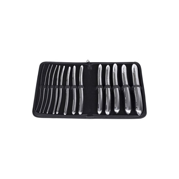 Dieser 14-teilige Dilatorensatz bietet endlose Möglichkeiten zum sicheren und kontrollierten Experimentieren. Dank der zunehmenden Durchmesser kannst du Schritt für Schritt trainieren und dich an verschiedene Größen gewöhnen. Jeder Dilator ist aus solidem, weichmacherfreiem Material für den langfristigen Gebrauch und einfache Reinigung gefertigt. Das Set wird in einem schönen Etui geliefert, sodass die Dilatoren übersichtlich und hygienisch aufbewahrt bleiben. Ideal für Anfänger sowie erfahrene Benutzer, die ihre Grenzen erkunden und die Erfahrung der urethralen Stimulation erweitern möchten.