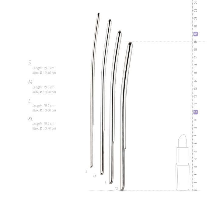 De Sinner Single Ended Dilator Set is een uitdagende en spannende toevoeging aan je collectie! Deze set bestaat uit vier hoogwaardige dilators met diameters van 4, 5, 6 en 7 mm, perfect voor zowel beginners als ervaren gebruikers die hun grenzen willen verleggen. Gemaakt van duurzaam roestvrij staal, zijn deze dilators niet alleen sterk en glad, maar ook lichtgewicht en eenvoudig vast te houden dankzij het platte handvat dat zorgt voor een uitstekende grip. Voor een veilige en hygiënische ervaring is het belangrijk om de toys voor en na gebruik schoon te maken met een speciale toy cleaner en water. Ga de uitdaging aan en ervaar nieuwe sensaties met deze veelzijdige set!