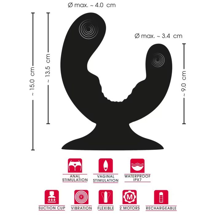Dieses einzigartige Design ist perfekt auf deinen Körper abgestimmt und bietet ein unvergleichliches Erlebnis, egal ob du dich für eine sanfte Berührung oder eine intensivere Stimulation entscheidest. Dank der starken Sauggrundlage kannst du den Vibrator fest an glatten Oberflächen befestigen, sodass du freihändig Vergnügen genießen kannst. Die flexible Form ist ideal für gleichzeitige vaginale und anale Stimulation, sodass du das ultimative Gefühl erleben kannst, das du dir immer gewünscht hast.