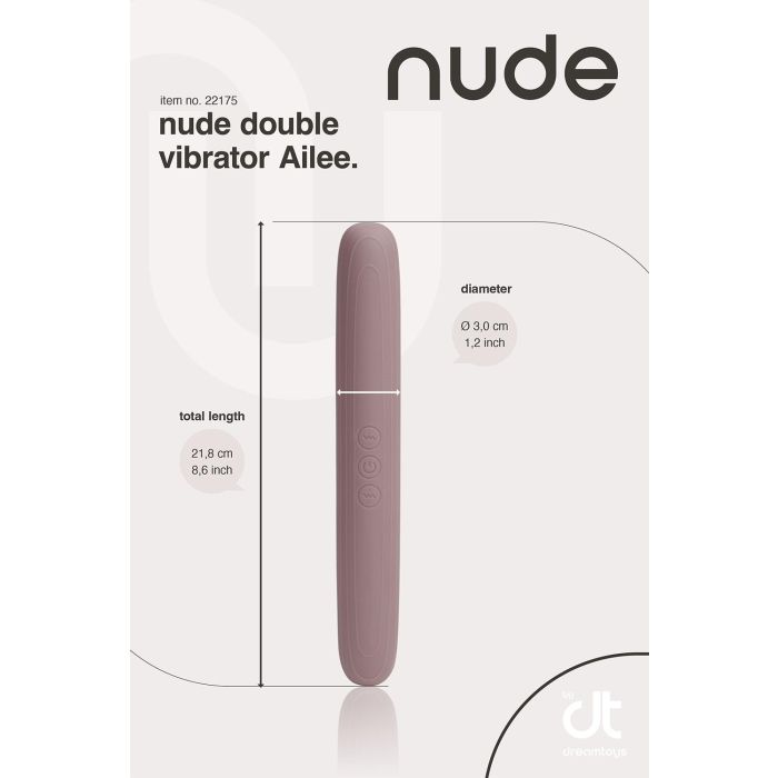 Lernen Sie Ailee von Nude kennen, den doppelten Vibrator, der Ihr Vergnügen auf ein neues Niveau bringen wird, egal ob Sie alleine sind oder mit einem Partner! Ailee ist aus weichem Silikon und ABS gefertigt, mit zwei unabhängig arbeitenden Enden, jeweils mit 10 kraftvollen Vibrationen - 8 rhythmische Muster und 2 Geschwindigkeiten.