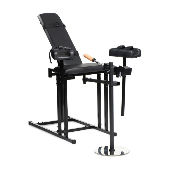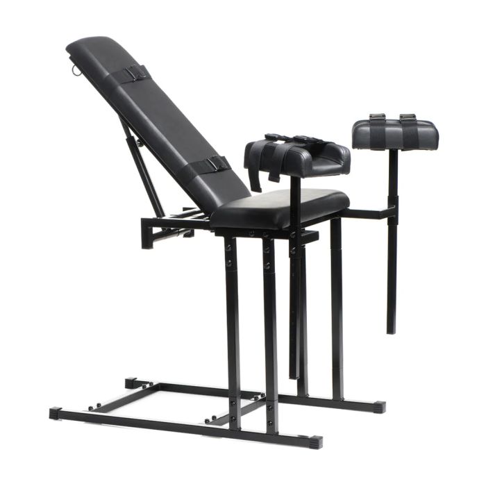Der Extreme Obedience Chair ist der verstellbare Bondagestuhl, der Ihre Fantasien in neue Höhen hebt. Mit einem robusten Rahmen, der bis zu 199 kg tragen kann, bietet dieser Stuhl die Stabilität, die Sie benötigen, um Ihre Abenteuer zu erkunden. Die verstellbare Rückenlehne und Beinhöhe ermöglichen es, jeden Winkel und jede Position zu erkunden, ob Sie nun sich selbst oder Ihren Partner in die perfekte Haltung bringen möchten. Lassen Sie Ihren Partner aufrecht sitzen für eine spannende Beobachtung von Genuss und Schmerz oder lehnen Sie sie zurück für eine entspannte Erfahrung, bei der ihr Körper bereit für Neckereien und sinnliche Spiele ist.