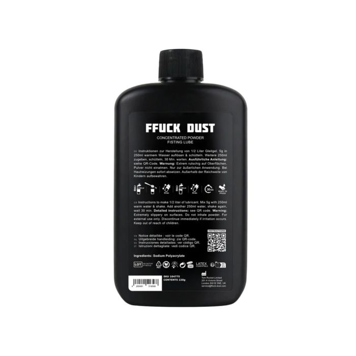 Wat FFuck Dust echt onderscheidt, is de mogelijkheid om de consistentie aan te passen aan jouw voorkeuren. Meng het poeder met water voor een dikkere of dunnere lube, perfect voor elke situatie die serieuze slip vereist. Met één fles maak je tot wel 22 liter gebruiksklare lubricant, wat het ultra-efficiënt maakt. Of je nu gaat voor intense, high-volume sessies of een zachtere glijervaring, FFuck Dust is meer dan alleen een lube; het is jouw upgrade.