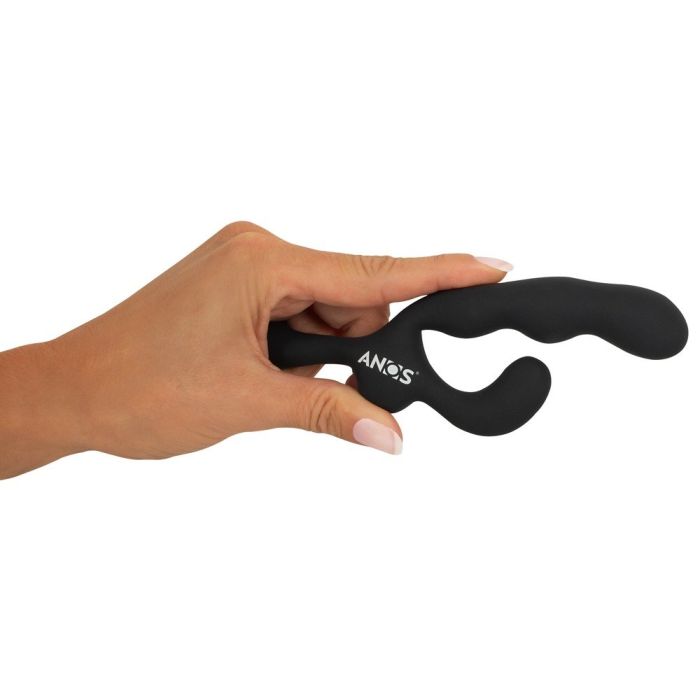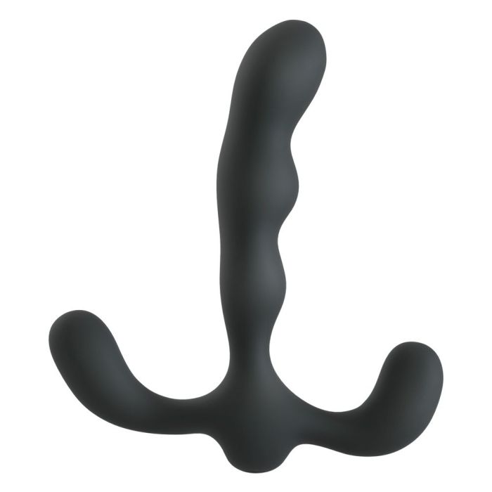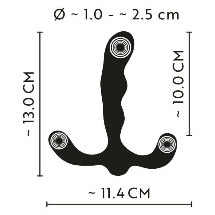 Der dreifache anale Vergnügungs-Prostatastimulator von ANOS ist anatomisch perfekt geformt und hat drei Arme mit jeweils einem leistungsstarken Motor, der sieben Vibrationsmodi bietet. Der zentrale Schaft ist gewellt und hat einen schrägen Kopf, der nach oben breiter wird, wodurch der P-Punkt mühelos erreicht wird. Neben der Prostata und dem Analkanal werden auch der Anusring und das Perineum durch den vibrierenden Analstopper stimuliert.