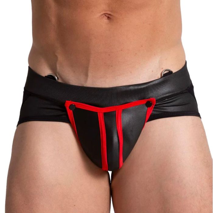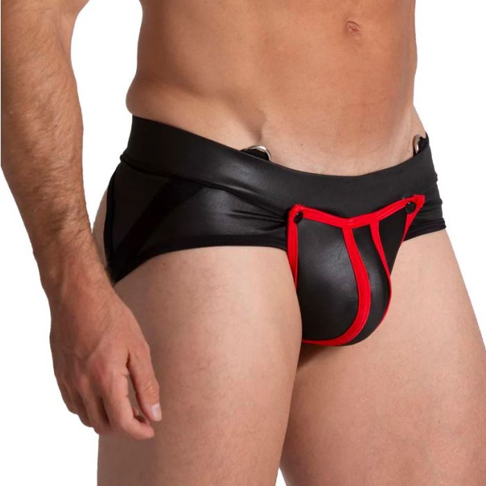Wat deze jockstrap echt onderscheidt, zijn de twee metalen ringen aan de tailleband. Deze ringen zijn ideaal voor het bevestigen van een harnas, waardoor je outfit een spannende extra dimensie krijgt. Of je nu een opwindende avond uit plant of gewoon je zelfvertrouwen een boost wilt geven in de slaapkamer, deze jockstrap is de perfecte keuze.