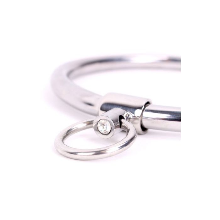 Gemaakt van glanzend, zwaar staal, biedt deze halsband niet alleen een luxe uitstraling, maar ook een aangenaam gewicht dat heerlijk aanvoelt tegen de huid. De afgeronde randen zorgen ervoor dat je comfortabel kunt genieten van je avonturen, zonder irritatie. De opvallende O-ring aan de voorkant is niet alleen een prachtig designelement, maar ook uiterst praktisch. Hiermee kun je eenvoudig een riem, touw of andere bondage-uitrusting bevestigen, waardoor je eindeloze mogelijkheden hebt om je fantasieën te verkennen.