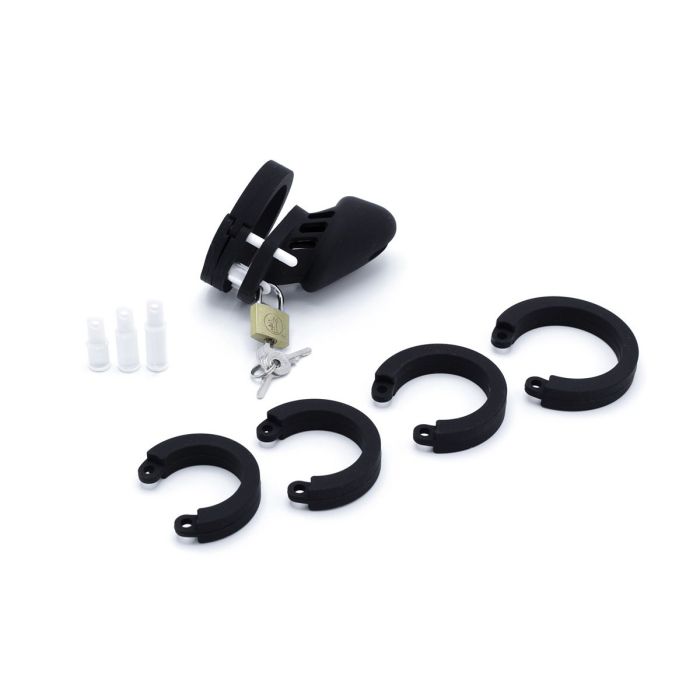 Deze kuisheidsgordel is geschikt voor vrijwel alle mannen en wordt geleverd met vijf verwisselbare ringen in verschillende maten, zodat je de perfecte pasvorm kunt vinden. Daarnaast zijn er vier witte afstandhouders inbegrepen om de lengte aan te passen, wat zorgt voor een ideale afstemming op verschillende penismaten.