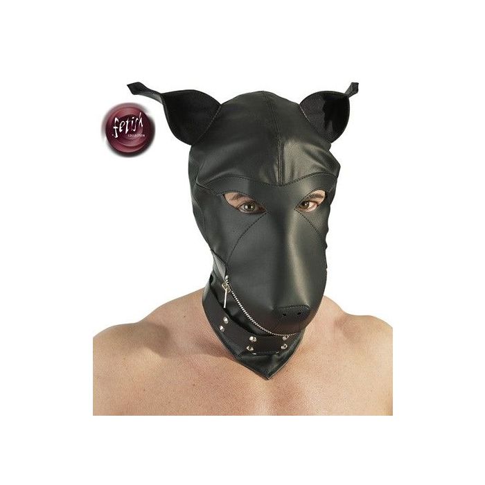 Dit geweldige lederen imitatie hondenmasker is zeer gedetailleerd en jij zal je al snel een echte hond voelen met dit masker op. Het leder imitatie hondenmasker heeft gaten op oog hoogte zodat jij alles nog wel kan zien maar mond en neus zijn helemaal gesloten totdat je baasje beslist om die vrij te laten. Met het ritsje om de snuit is dit snel en eenvoudig te regelen. Om de hals zit een band met stoere studs waar aan de voorkant een ring is bevestigd zodat jij ook aangelijnd kan worden. De oortjes bovenop het masker zijn mooi afgewerkt en lijken levensecht. Het masker is aan de achterkant verstelbaar en met touwtjes vast te zetten, hij zal dus een perfecte pasvorm hebben.
