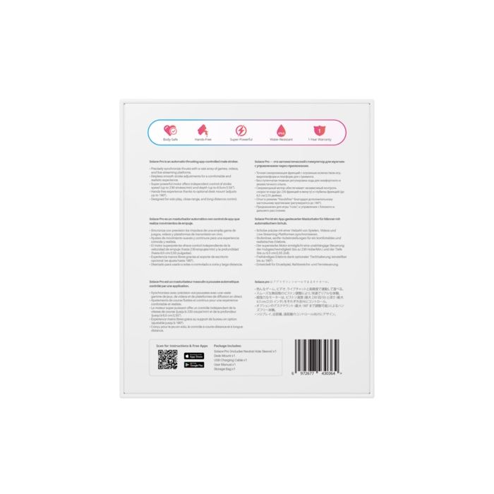 Der Solace Pro ist ein revolutionärer automatischer Masturbator, der Ihr Vergnügen auf ein höheres Niveau bringt. Dank der Kompatibilität mit Lovense Al Sync können Sie den Masturbator mit erwachsenem Inhalt synchronisieren für ein eindringliches Erlebnis. Das Gerät verfügt über eine Stoßgeschwindigkeit von bis zu 300 Stößen pro Minute und einen Verstellbereich von 6 cm, sodass Sie die Sitzung vollständig nach Ihren Wünschen anpassen können.