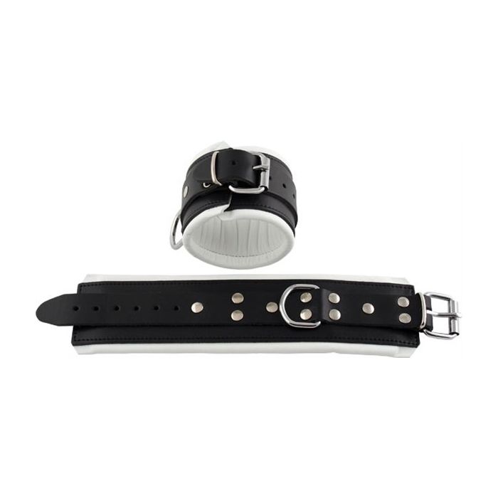 Mister B Leder Fußfesseln - Schwarz/Weiß