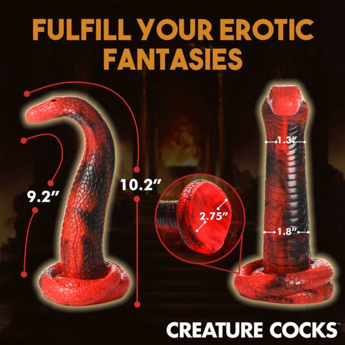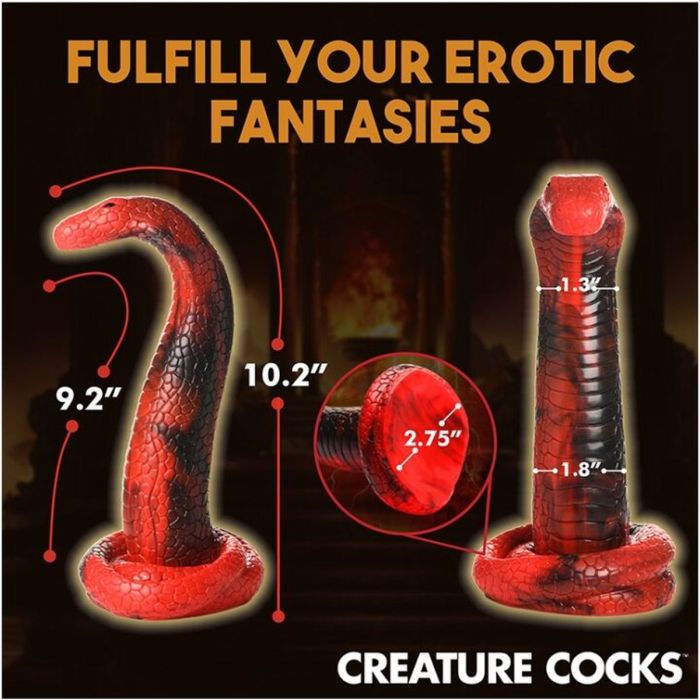 Der King Cobra Silikon Dildo der Marke XR Brands hat eine verführerische rote Farbe. Mit einer Gesamtlänge von 21 cm und einer einführbaren Länge von 18 cm bietet dieser Dildo eine perfekte Balance zwischen Abenteuer und Komfort. Die einzigartige Form und Textur sorgen für neue Empfindungen, die Ihre Fantasien zum Leben erwecken. Dank der starken Saugnapfbasis können Sie diesen Dildo freihändig benutzen, was Ihnen die Freiheit gibt, sich voll und ganz Ihren Leidenschaften hinzugeben. Hergestellt aus hochwertigem, körpersicherem Silikon, ist der King Cobra nicht nur sicher, sondern auch einfach mit warmem Wasser und milder Seife sauber zu halten. Fügen Sie diesen unwiderstehlichen Dildo Ihrer Spielzeugsammlung hinzu und bereiten Sie sich auf fantasievolle Abenteuer vor, die Ihre Sinne reizen und Sie zu neuen Höhen des Vergnügens bringen werden.