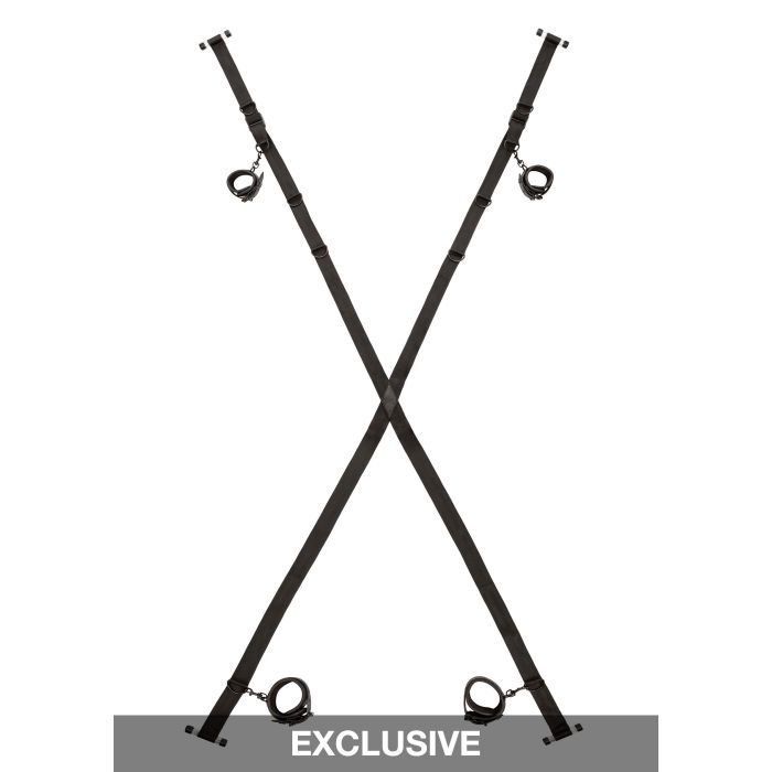 Das Zubehör ist vollständig verstellbar und für sowohl Standard- als auch übergroße Türen geeignet, was Flexibilität und ein sicheres Erlebnis für alle Benutzer bietet. Vier abnehmbare und verstellbare Hand- und Fußfesseln sind enthalten, ausgestattet mit Schnallenbefestigungen für eine bequeme und kontrollierte Einschränkung.