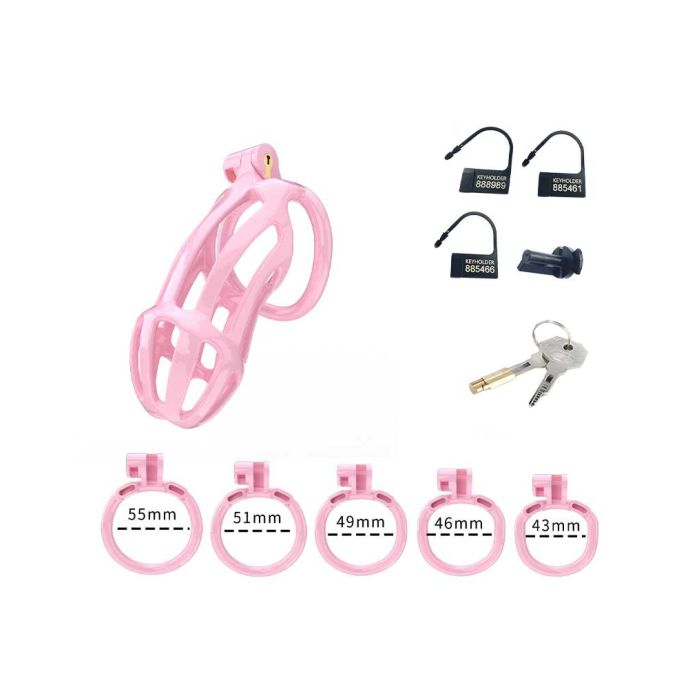 Dieses Peniskäfig-Set wird mit 5 Ringen in verschiedenen Größen geliefert, die von 43 - 55 mm variieren, damit der Benutzer die richtige Größe für eine perfekte Passform wählen kann.