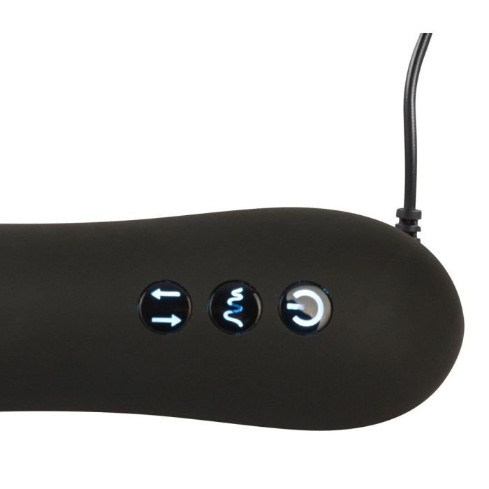 Der analer Vibrator selbst beeindruckt durch seine einschüchternde, aber einfache Form mit einem konisch verarbeiteten Kopf, der das anale Einführen erleichtert. Der untere Teil des Schafts liegt angenehm in der Hand, worauf sich die Steuerung befindet, um sowohl die Stoßfunktion als auch die Vibrationsmodi zu regulieren. Der analer Vibrator hat sieben verschiedene Vibrationsmuster. In der Mitte des Schafts befindet sich der Auszugsteil, der ordentlich mit einem gefalteten Überzug versehen ist.