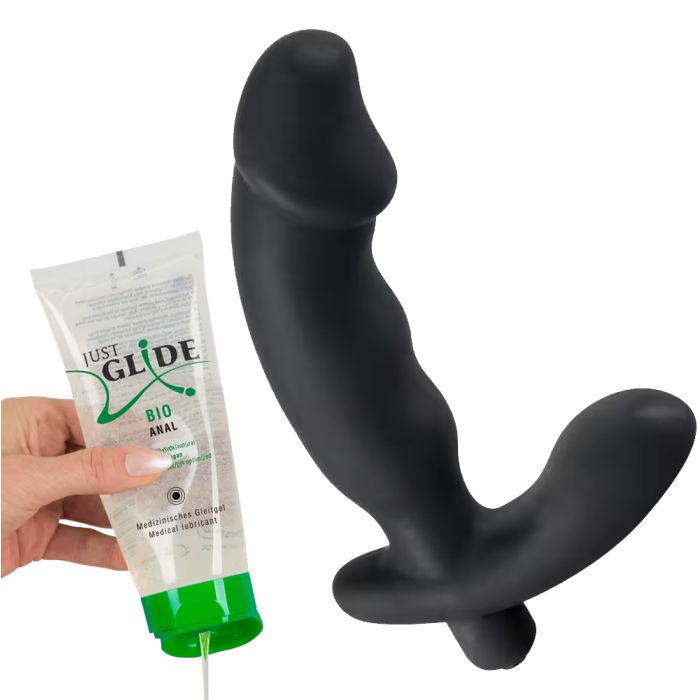 Zum Vibrator wird eine Flasche mit 200 ml Just Glide BIO Anal Gleitmittel mitgeliefert. Dieses Gleitmittel ist vollständig vegan, biologisch abbaubar und aus natürlichen Zutaten hergestellt. Es ist kompatibel mit Latexkondomen und Silikontoys, geruchsneutral, farblos und klebt nicht. Dank der langanhaltenden Wirkung gleitet der Vibrator sanft und angenehm, ohne Irritationen oder Reibung, sodass Sie die Erfahrung voll genießen können.