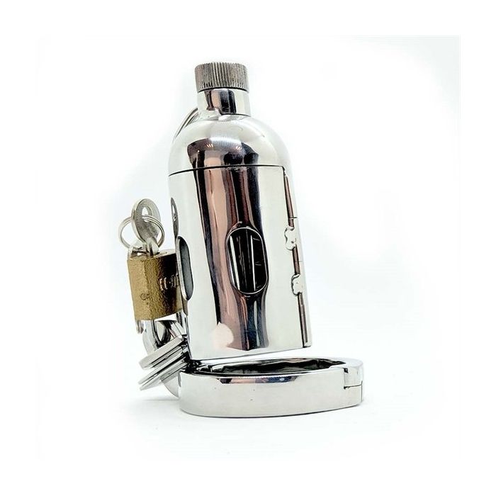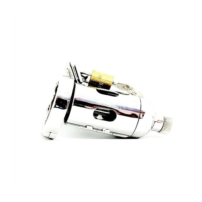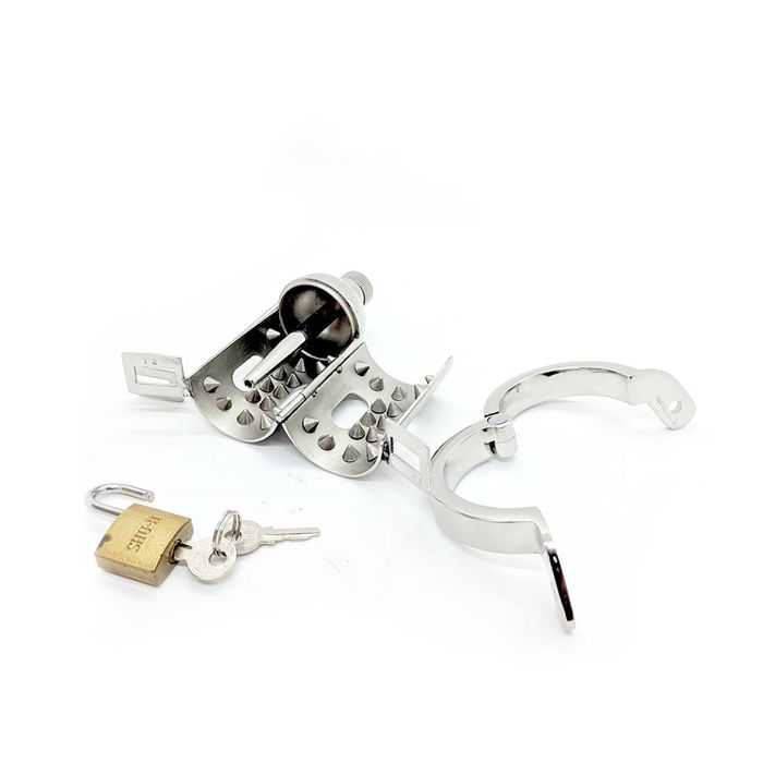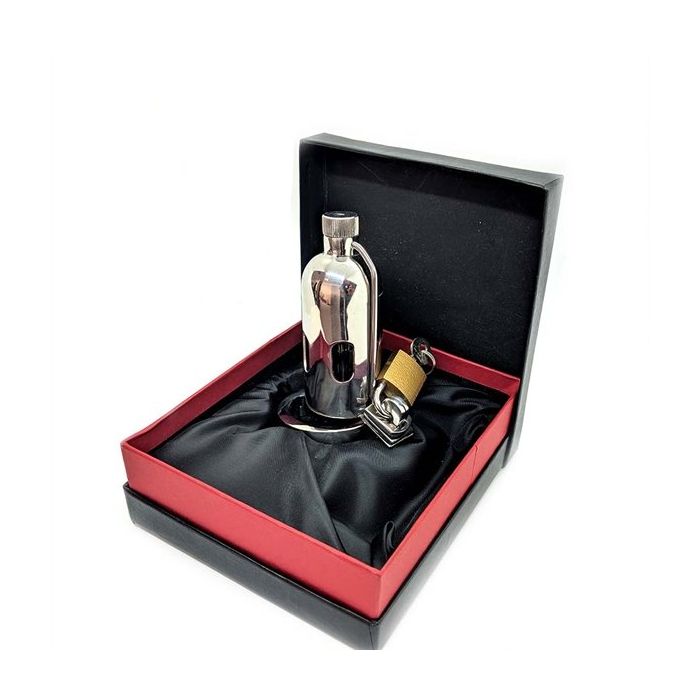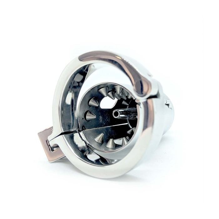 Bist du auf der Suche nach einem sehr kinky Peniskäfig, bei dem Lust und Schmerz zusammenkommen? Dann bist du bei diesem Edelstahl-Peniskäfig Pleasure Dome genau richtig. Der Peniskäfig ist mit spannenden Spikes ausgestattet und verfügt sogar über einen 7 mm Penisstick, den du mit dem Drehverschluss an der Vorderseite des Peniskäfigs verriegeln kannst. Der Ring wird um das gesamte Paket befestigt, um dann den Peniskäfig mit dem mitgelieferten Schloss zu schließen. Bist du ein BDSM-Liebhaber, der auf der Suche nach einem sehr kinky Keuschheitskäfig ist? Dann ist dies ein absoluter Tipp!