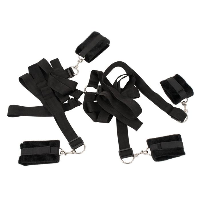 Mit diesem Set von verstellbaren Bettgurten können Sie Ihr Bett in einen BDSM-Bereich verwandeln. Selbst wenn Sie keine praktischen Stangen haben, an denen Sie Ihre Hände und Knöchel befestigen können, können Sie diese Gurte einfach unter die Matratze befestigen. An beiden Enden des Bettes können Sie die Karabinerhaken anbringen, an denen Sie die Hand- und Fußfesseln befestigen können. Diese Fesseln sind mit Klettverschlüssen ausgestattet, sodass Sie sie leicht um die Handgelenke und Knöchel befestigen können. Dadurch können Sie die gewünschte Position selbst bestimmen, während die Fesseln fest genug sind, um nicht loszulassen. Erleben Sie gemeinsam, wie aufregend es ist, gefesselt zu sein oder die Kontrolle zu haben, und genießen Sie einen spannenden BDSM-Abend.