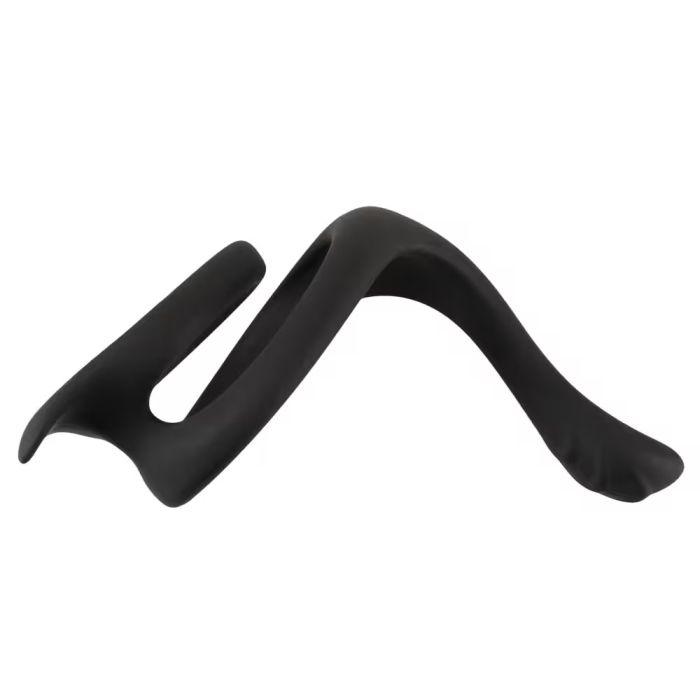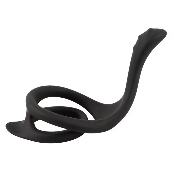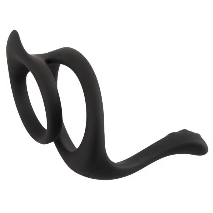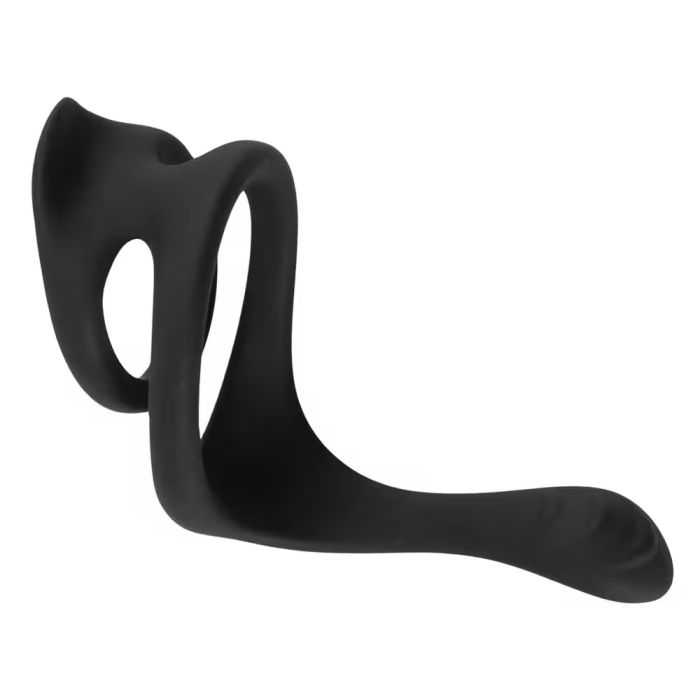 Silikon Penis- und Hodenring mit Perineum-Retraktor - Schwarz
