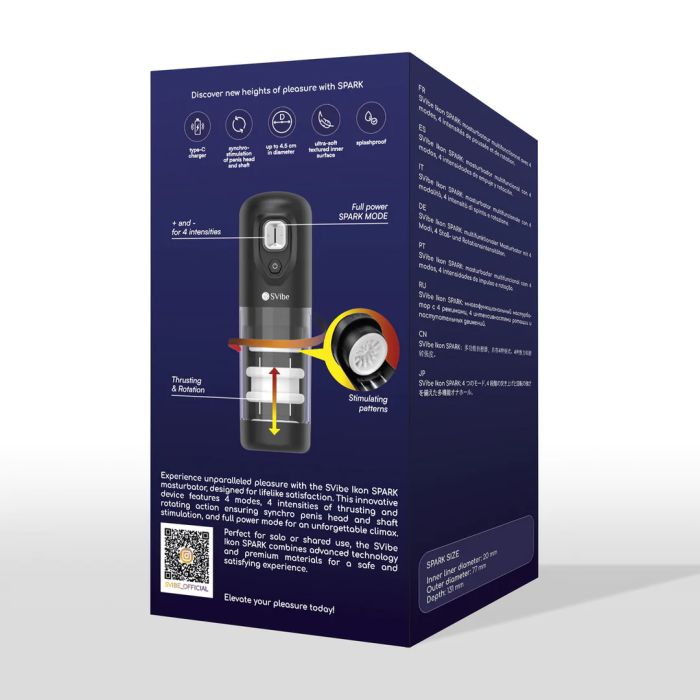 De SVibe Ikon SPARK masturbator is een meesterwerk van technologie en design dat speciaal is ontwikkeld voor een levensechte ervaring. Met maar liefst 4 verschillende standen en 4 intensiteiten van stuwen en roteren, biedt deze masturbator een ongeëvenaarde stimulatie van zowel de penis hoofd als de schacht. De unieke 'volledige macht modus' zorgt voor een explosieve climax die je niet snel zult vergeten. Of je nu solo wilt genieten of samen met een partner, de SVibe Ikon SPARK is perfect voor elke gelegenheid. Gemaakt van premium materialen, garandeert dit apparaat een veilige en bevredigende ervaring. Verhoog je plezier en laat je zintuigen prikkelen met de SVibe Ikon SPARK – jouw nieuwe beste vriend voor ultiem genot!