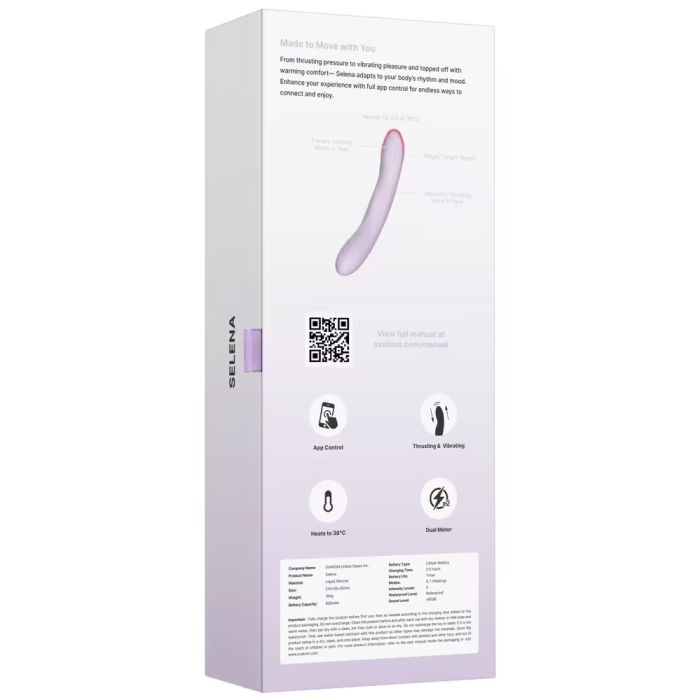 Mit nicht weniger als 5 verschiedenen Modi und 5 Intensitäten bietet der Selena endlose Möglichkeiten für dein persönliches Vergnügen. Die Bedienung ist einfach mit einem einzigen Knopfdruck, sodass du dich vollständig auf das Erlebnis konzentrieren kannst, ohne Aufwand. Dank der kraftvollen, leisen Motoren genießt du diskreten Spaß, wo immer du bist. Für noch mehr Optionen kannst du die SVAKOM-App auf deinem Smartphone verwenden. Damit kannst du den Vibrator aus der Ferne steuern, die Einstellungen anpassen und sogar mit Musik oder Videos synchronisieren für ein einzigartiges Erlebnis.