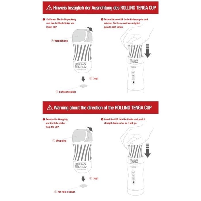 De Rolling Masturbator kan ook worden gebruikt voor een handjob zonder de vacuum Gyro Roller. De wegwerp masturbator is klaar voor onmiddellijk gebruik. Na de zachte inbrenging voorziet de glijring de penis van voldoende glijmiddel, zodat extra glijmiddel niet nodig is. Voor het zuigeffect wordt de sticker verwijderd uit de vacuümopening aan het uiteinde van de beker en deze wordt met de vinger gesloten of geopend.