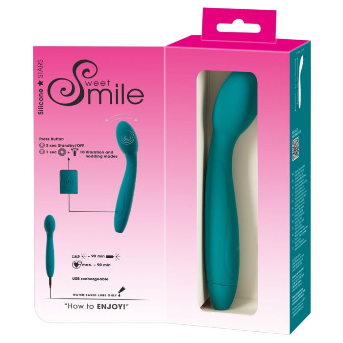 Der Sweet Smile Vibrator ist dein neuer bester Freund für dynamische und intime Momente! Dieser leichte und superhandliche Vibrator ist mit einem knickenden Kopf ausgestattet, der perfekt für ein unvergleichliches Massage-Erlebnis gebogen ist. Der ausgeprägte Massagekopf konzentriert die Vibrationen genau dort, wo du sie brauchst, während die Knickfunktion eine pulsierende Bewegung erzeugt, die dich auf eine überraschende Weise stimulieren wird. Ob du deine Vagina oder deinen G-Punkt verwöhnen oder andere Hotspots an deinem Körper entdecken möchtest, dieser weiche vibrierende Massagekopf bietet endlosen Spaß, sowohl solo als auch zusammen mit deinem Partner. Hergestellt aus robustem, samtweichem Silikon, gleitet der Vibrator mühelos über deine Haut und ist besonders leicht einzuführen. Mit nicht weniger als 10 verschiedenen Vibrations- und Knickmodi, die du einfach mit einem Knopfdruck am Ende steuern kannst, kannst du dein Erlebnis vollkommen personalisieren. Und das Beste? Dieser vielseitige Vibrator ist wasserdicht, sodass du ihn sogar in der Badewanne oder unter der Dusche verwenden kannst. Wiederaufladbar mit dem mitgelieferten USB-Ladekabel, ist der Sweet Smile Vibrator die perfekte Ergänzung für deine intimen Momente!