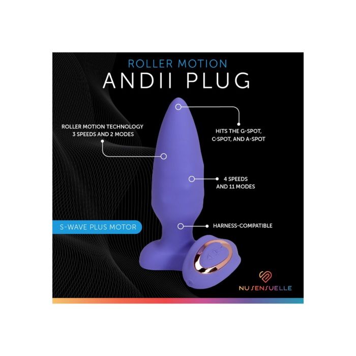 Der Vibrating Butt Plug Andii Roller Motion von Nu Sensuelle ist für vielseitige und intensive Stimulation konzipiert. Dank des leistungsstarken S-Wave Plus-Motors rollt der Plug von selbst und bringt dynamische Bewegungen zu Ihrem G-Punkt, Ihrer Klitoris und analen Zonen. Mit vier Vibrationsgeschwindigkeiten und elf Vibrationsmodi können Sie die Intensität einfach auf Ihre Vorlieben abstimmen für ein vollständig persönliches Erlebnis.