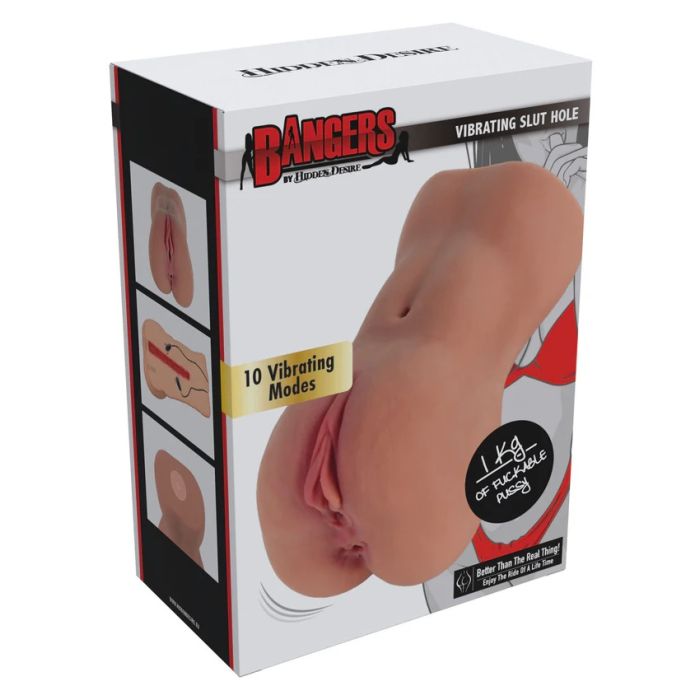 De Vibrerende Masturbator Slut Hole van BANGERS by HIDDEN DESIRE is speciaal ontworpen voor mannen die verlangen naar intense en authentieke genotservaringen. Met twee krachtige bullet vibrators en maar liefst 10 verschillende vibratiestanden, biedt deze masturbator een diepgaande, pulserende stimulatie die je zintuigen zal prikkelen. Gemaakt van premium TPE, omarmt het strakke, geribbelde fuckhole je als een wanhopige minnares, waardoor elke sessie een onvergetelijke ervaring wordt. Voeg gewoon wat waterbasis glijmiddel toe en laat deze vibrerende pussy je wildste fantasieën waarmaken. Altijd vochtig, altijd strak en klaar om je te laten genieten als nooit tevoren!
