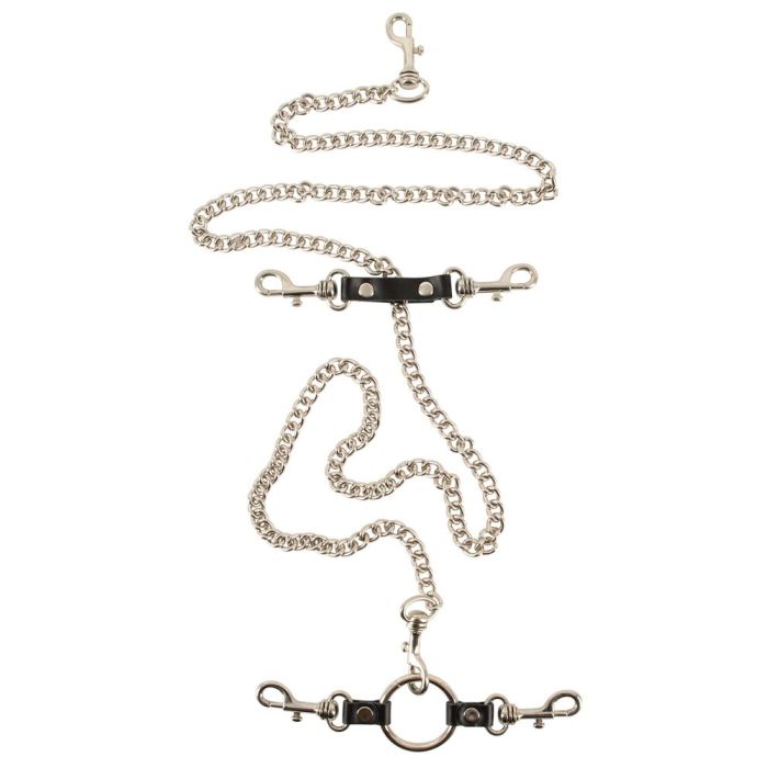 Comfort staat voorop met de brede leren boeien, die zijn ontworpen met een dikke, zachte vulling en gestikte randen voor een luxe gevoel. De verstelbare gespsluitingen zorgen voor een perfecte pasvorm, terwijl stevige ringen de bevestiging van de karabijnhaken vergemakkelijken. De verbindingsketting met meerdere karabijnhaken en de leiband met handlus maken deze set compleet en veelzijdig. Laat je fantasie de vrije loop en geniet van een onvergetelijke bondage-ervaring met deze professionele set!