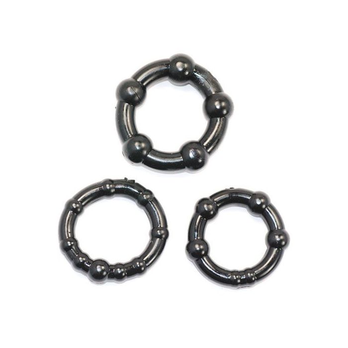Mit diesem Set aus Cockringen haben Sie alles, was Sie für harte und langanhaltende Erektionen benötigen! Dieses Set besteht aus drei verschiedenen Cockringen von Ø 3,00 cm bis 4,00 cm. Verwenden Sie einen oder gleich alle drei gleichzeitig! Alle Cockringe sind mit stimulierenden Noppen versehen. Hergestellt aus flexiblem und dehnbarem Silikon.